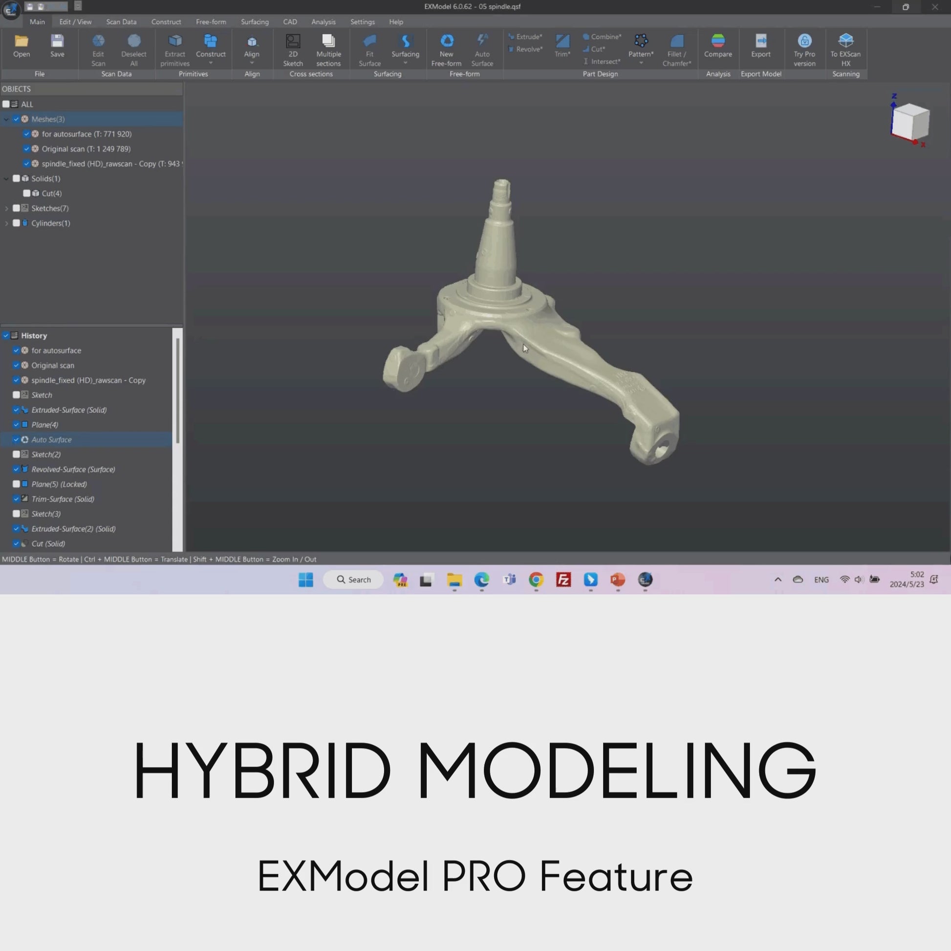 EXModel is a powerful bridge that simplifies CAD modeling from 3D scanning to manufacturing. It provides a comprehensive set of tools that enable you to transform mesh into a professional quality CAD solid model in easy steps.
