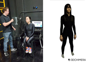 There are multiple scanners that are used to scan people - we use a friendly iPad-based 3D scanner. This 3D scanner is very good a capturing hair, which is usually the most difficult part of 3D scanning people. This scanner also captures color data. The color texture makes the data look very real, but the 3D data is lower resolution (+/- 5mm) than our industrial 3D scanners.